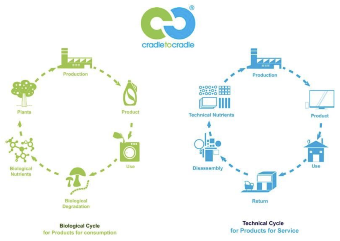 The concept was positioned as an ecological view of human economic activity and likened to the regenerative cyclical growth and relationship that a tree has with its environment; Trees ‘loop’ materials in endless ‘biological’ cycles where waste in one system was remade as food for another system. M+B asserted that industry could do the same with ‘technical’ cycles of nutrition. Waste could become food.