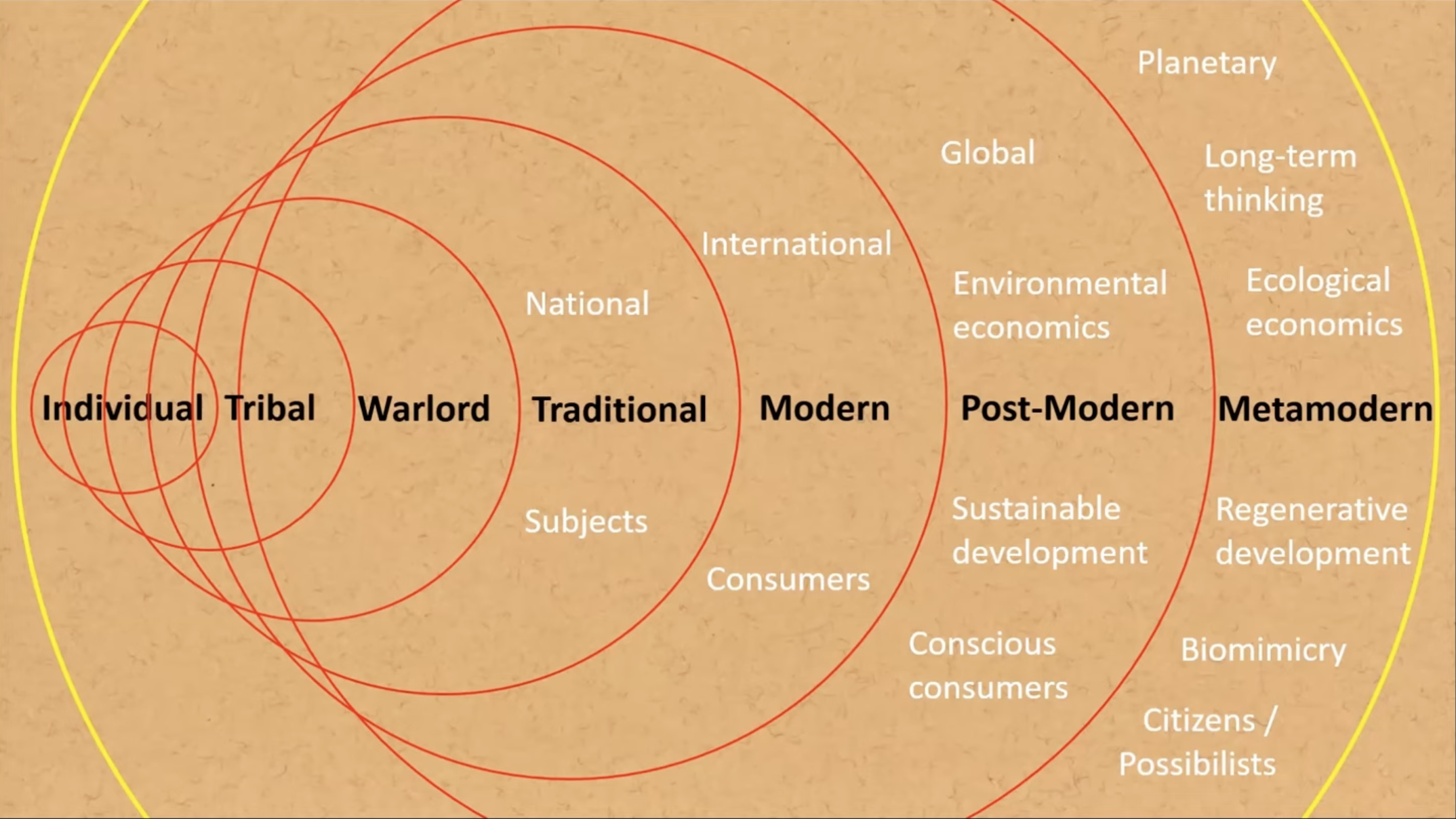 Palwyns most recent assertions from November 2025 identify a shift from the human ‘Post-Modern’ to the ‘Metamodern’ era characterised by Regenerative development, with the planet as the systemic unit and with long term thinking at its core. “want to get to a point where Human Beings are participating as nature and co-evolving as part of that whole system”. [10]