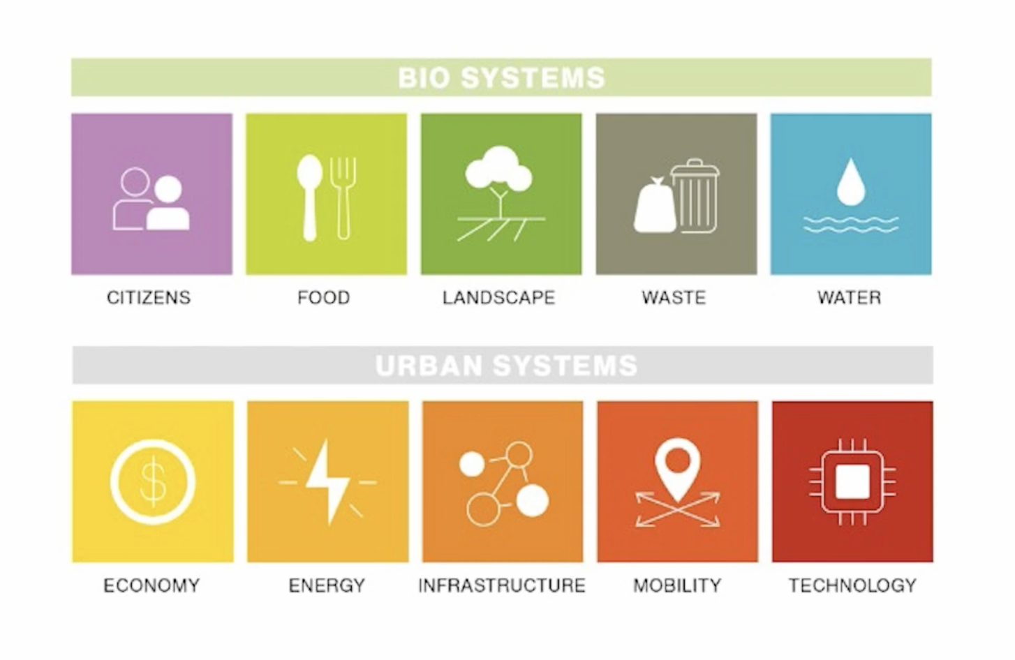 Biourbanism views humanity as part of a system of systems and ‘cities as anthromes’ or (anthropegenic biomes) categorised by the climate in which they exist. Cities are as ‘human modified nature’ that must be conceived and managed accordingly. Like Cradle to Cradles Biological and Technical nutrition, MacGregor splits out Biological & Urban Systems of cities as a lens through which cities resilience can be assessed.